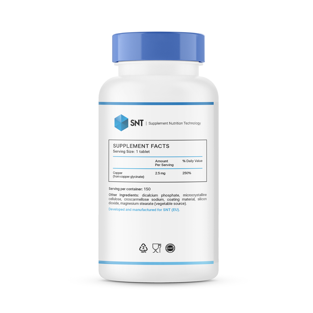 В SNT Chelated Copper медь представлена в форме глицината - хелатного соединения, а значит минерал уже полностью готов для усвоения организмом. Медь воздействует на кожу, поддерживая тонус и здоровье в целом. С этим минералом вы сможете сохранить молодость кожи на долгие годы. Помимо красоты кожи, медь препятствует преждевременному появлению седых волос. Медь является неотъемлемой частью множества ферментов, необходимых для здорового обмена веществ, а также антиоксидантной системы организма в борьбе со свободными радикалами.
