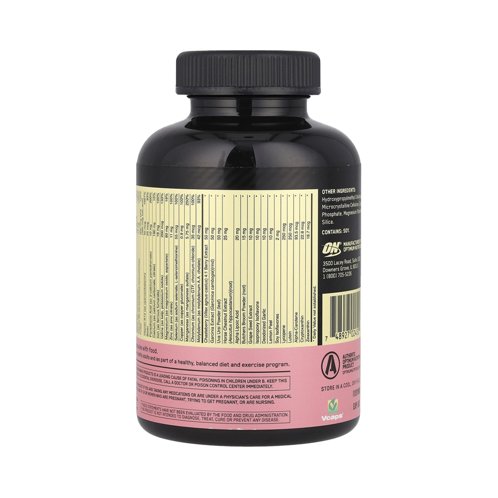 OPTI-WOMEN — это не простые мультивитамины. Это система оптимизации питательных веществ, содержащая 40 активных ингредиентов, включая 23 витамина и минерала, предназначенных для удовлетворения потребностей активных женщин в питательных веществах. Каждая порция обеспечивает эффективную питательную поддержку и состоит из 2 капсул Vcaps, одобренных Вегетарианским обществом.