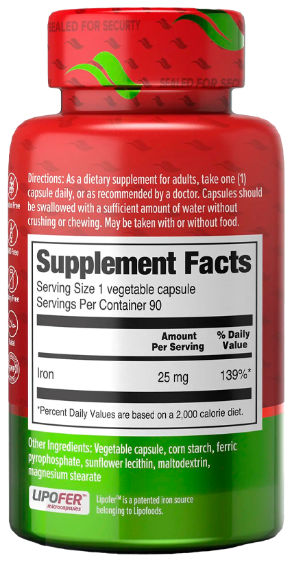 | пирофосфат железа, кукурузный крахмал, гидроксипропилметилцеллюлоза, подсолнечный лецитин, мальтодекстрин, Гидроксипропилметилцеллюлоза, оксид железа, стеарат магния. | ||